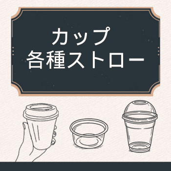 用途に合わせた多種類のカップ、蓋、ストロー。