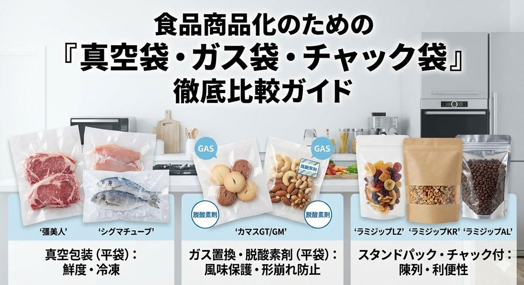 食品の風味を損なうことなく保存するための資材。包装機も取扱してます。