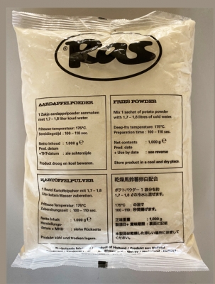 ラスポテトは、ジャガイモを粉末状(ポテトパウダー)にしたものを水と合わせて成形し、油で揚げて仕上げるポテトです。