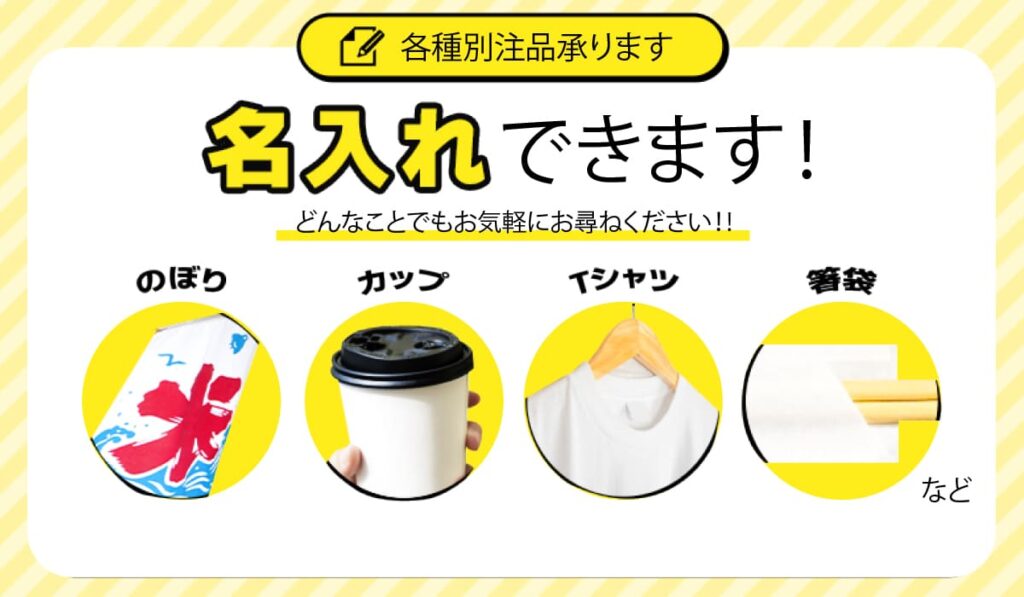 名入れ食器やユニフォームなどのオーダー品にも対応。