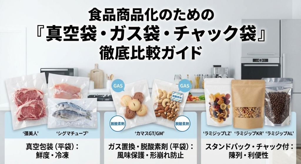 食品の商品化に最適な「真空袋・ガス袋・チャック袋」選び方と特徴比較