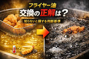 本記事では、実際に飲食店でフライヤーを使用している現場目線で、油の交換時期を判断する具体的な基準を解説します。