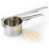 ロングポテトが作れるステンレス製ポテトマッシャー。手動で押し出し成型し、油で揚げるとロングポテトができます。